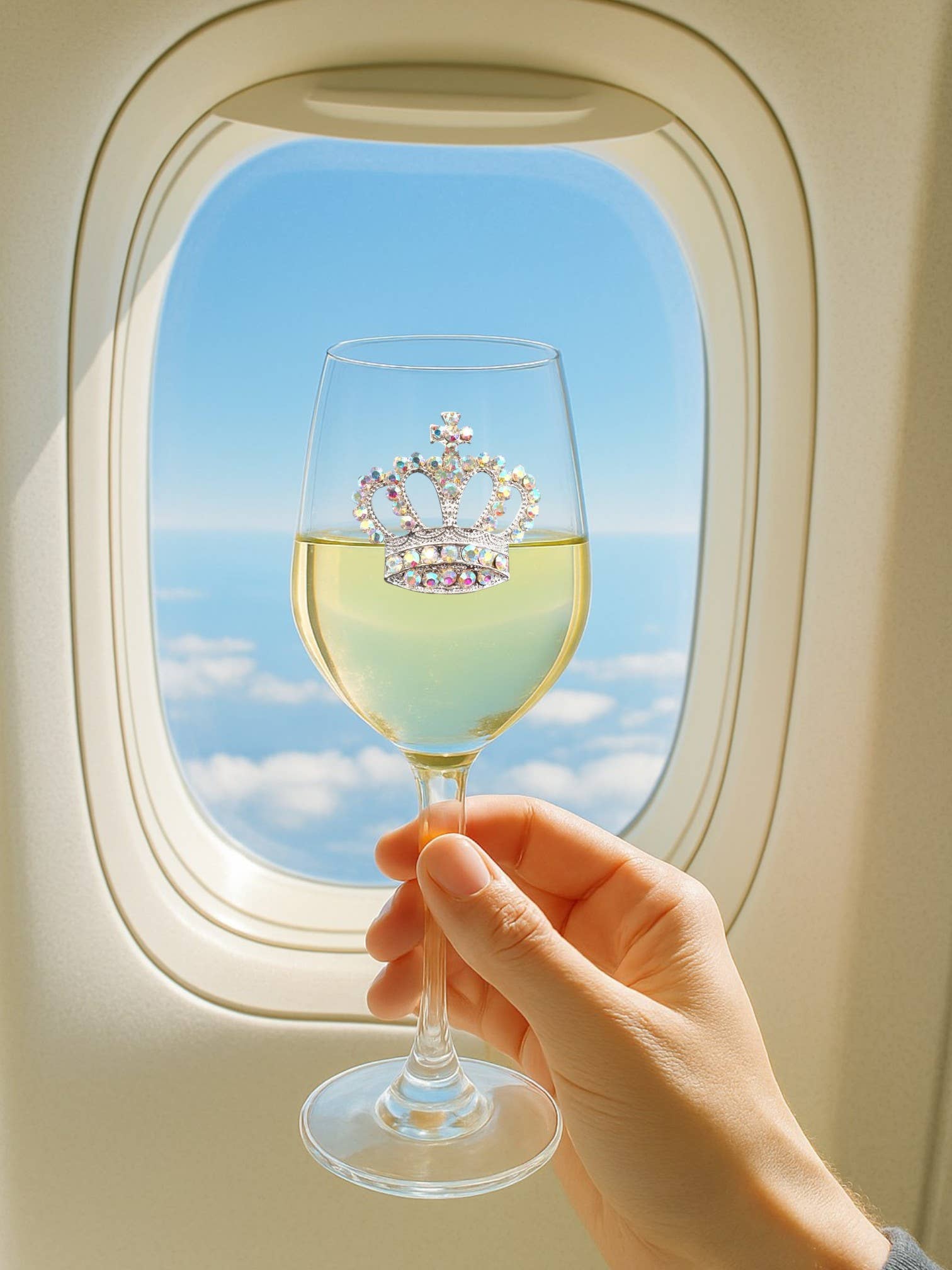 Aurora Borealis Crown Jeweled Stemmed Wine Glass