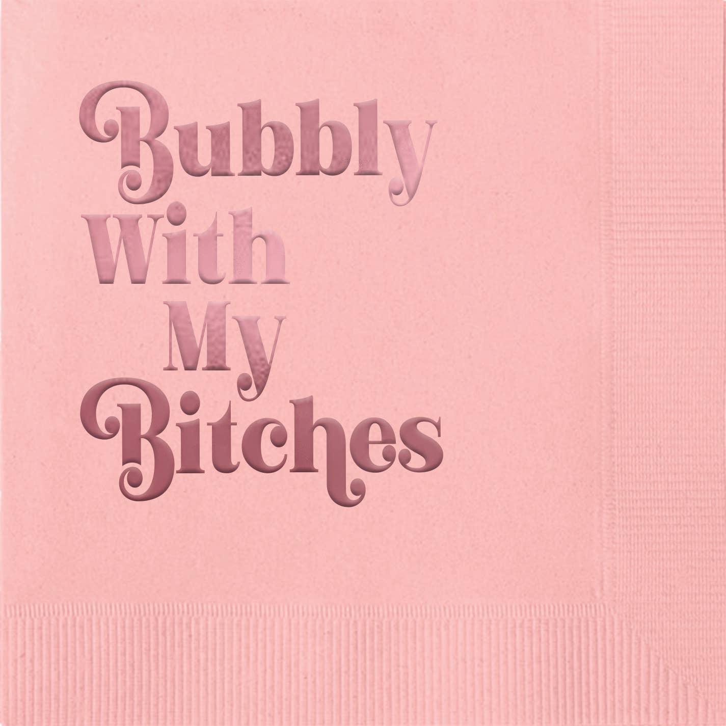 Get ready to party with your favorite ladies all night long with these pink foil "Bubbly With My Bitches" pretty pink colored beverage napkin. Perfect for any occasion, from hosting birthdays, brunches, cocktail parties, girls night out, girls night in! Give a gift for a host/hostess, or even a Happy Housewarming! Why settle for boring cocktail napkins when you can have ones with personality?!