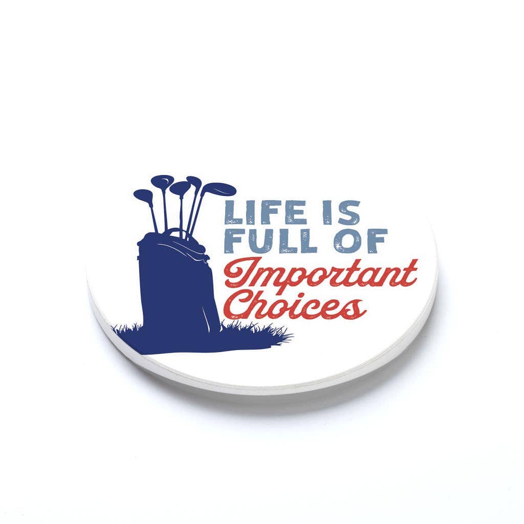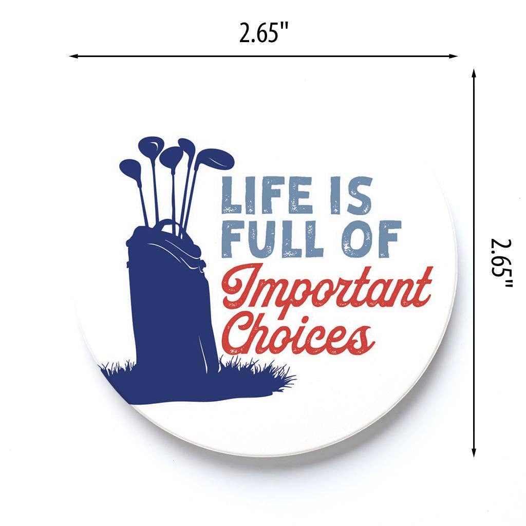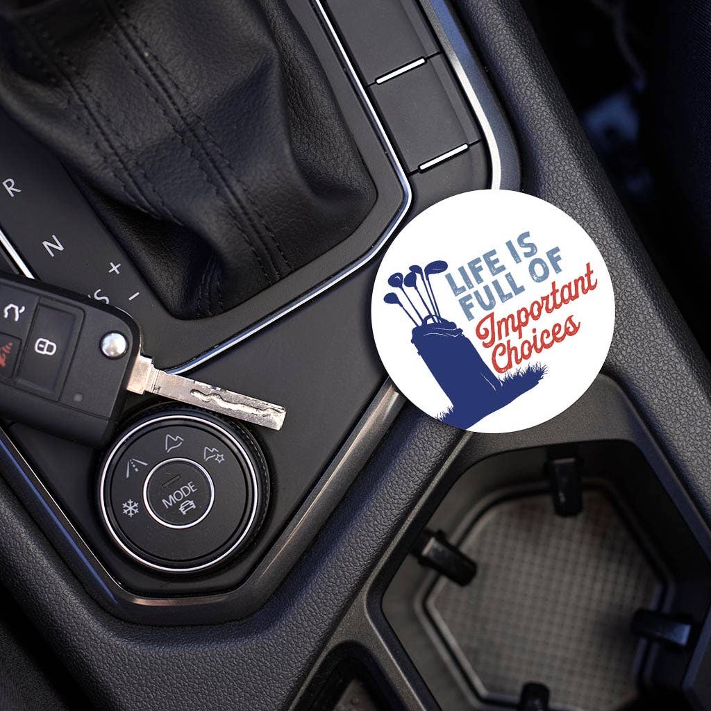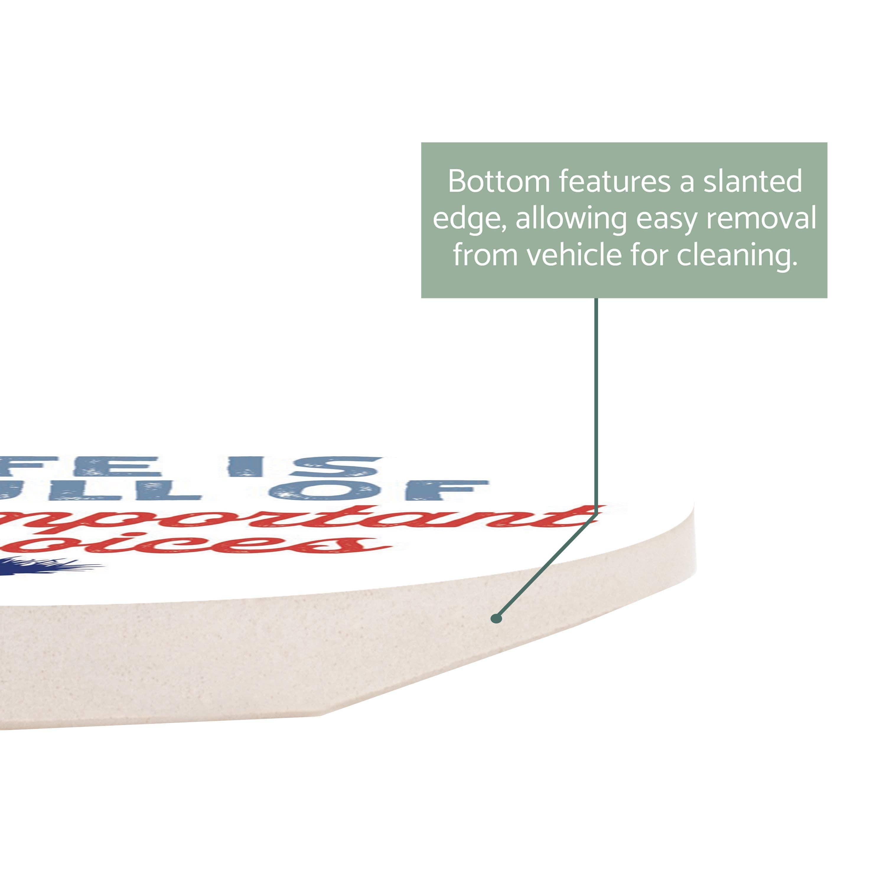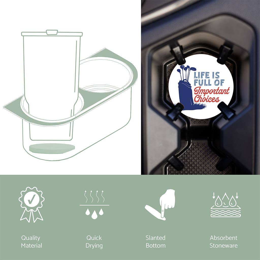 If you don’t know about car coasters yet…they’re a big deal. Like hair in the 80’s. You might ask yourself, “where have these been all my life?” Car coasters fit snuggly into your vehicle’s cup holders. Strategic divot on one side so they can be easily popped out. Pretty & practical – a pop of design and they keep your cup holders clean. 2.65” diameter. Absorbent ceramic coaster. Designed, printed and packaged in the USA