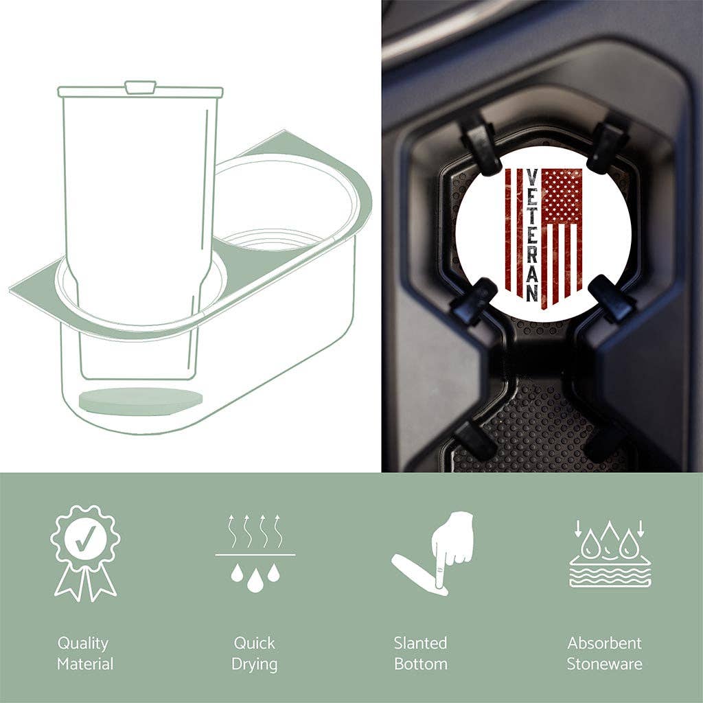 If you don’t know about car coasters yet…they’re a big deal. Like hair in the 80’s. You might ask yourself, “where have these been all my life?” Car coasters fit snuggly into your vehicle’s cup holders. Strategic divot on one side so they can be easily popped out. Pretty & practical – a pop of design and they keep your cup holders clean. 2.65” diameter. Absorbent ceramic coaster. Designed, printed and packaged in the USA