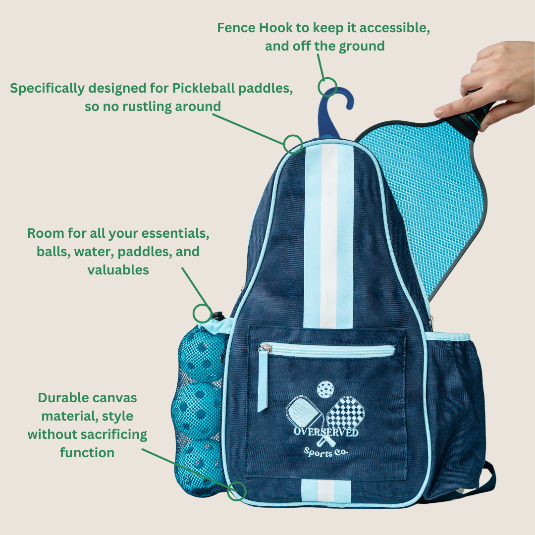 A modern twist on classic courtside style, this fun and stylish bag has been specifically designed to fit all your Pickleball needs! Whether you’re carrying a full set for the team or just your own paddle, our Classic Pickleball Bag securely transports your gear to the court. Made from our high quality canvas material, it’s the perfect addition to your set.