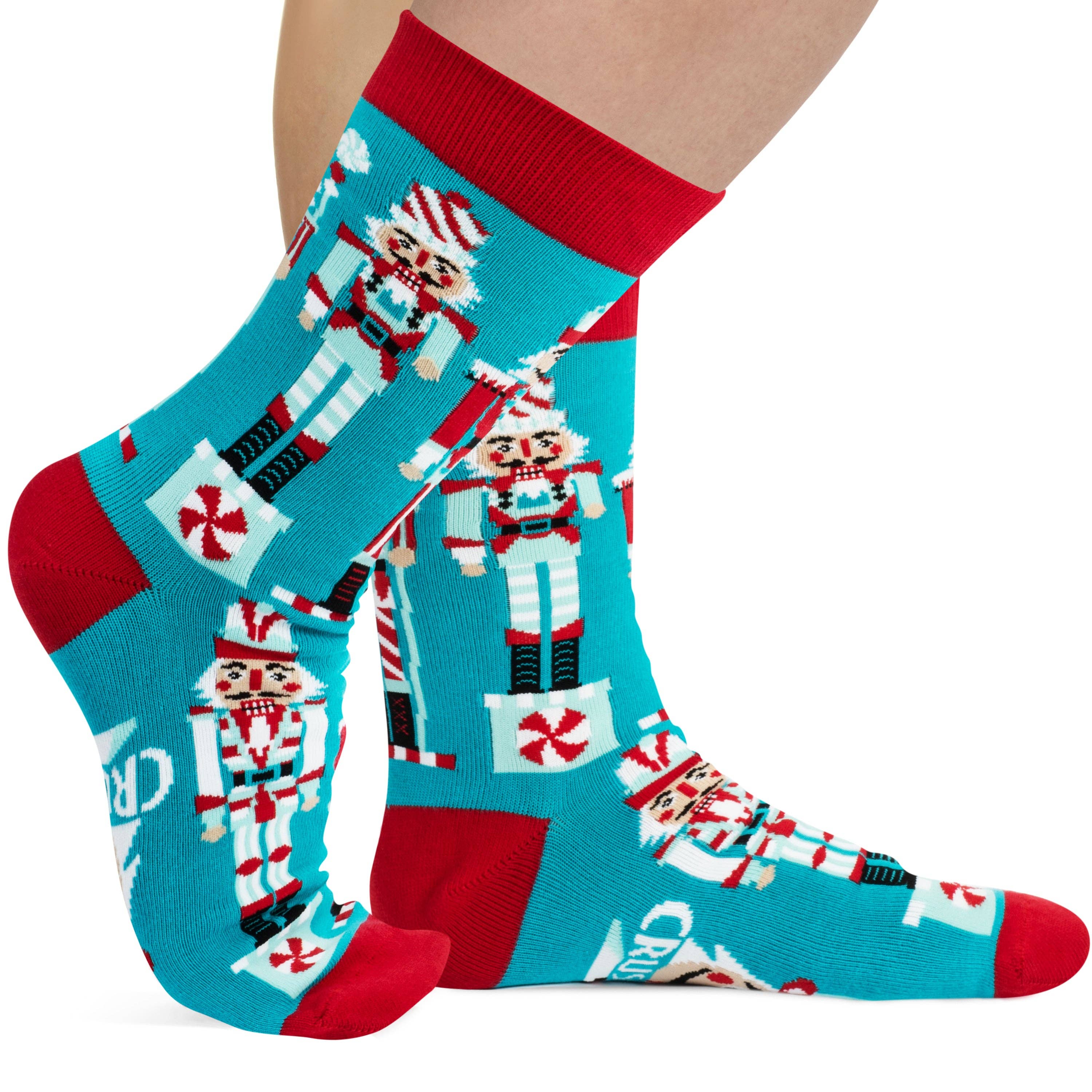 Do you go nuts for funny Christmas socks? Have we got the pair for you! Crush your holiday game in style with a pair of our beautifully designed nutcracker-inspired socks. Soft, stretchy and ultra-cozy, these eye-catching holiday socks are a fun way to stand out at your next Christmas party. You'll liven the mood when you kick your feet up and reveal the hidden message on the bottom: "Crushing It".