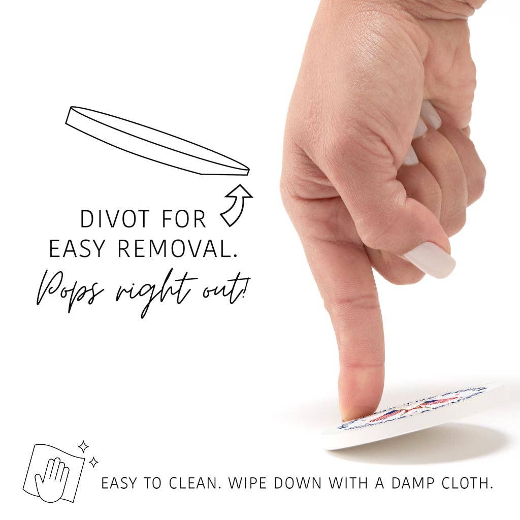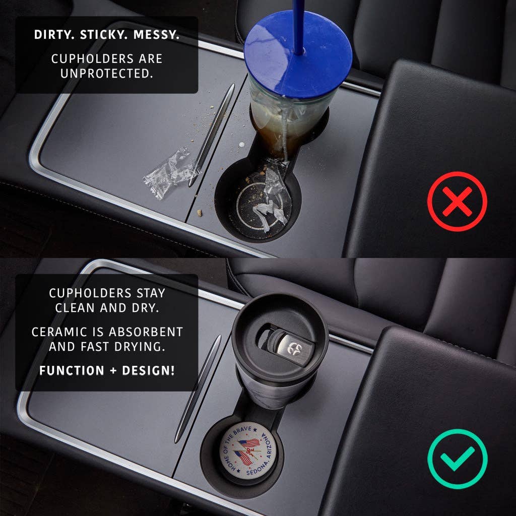 • Little humans in the car? Juice boxes and sippy cups happily sit on these coasters and can be easily wiped clean.