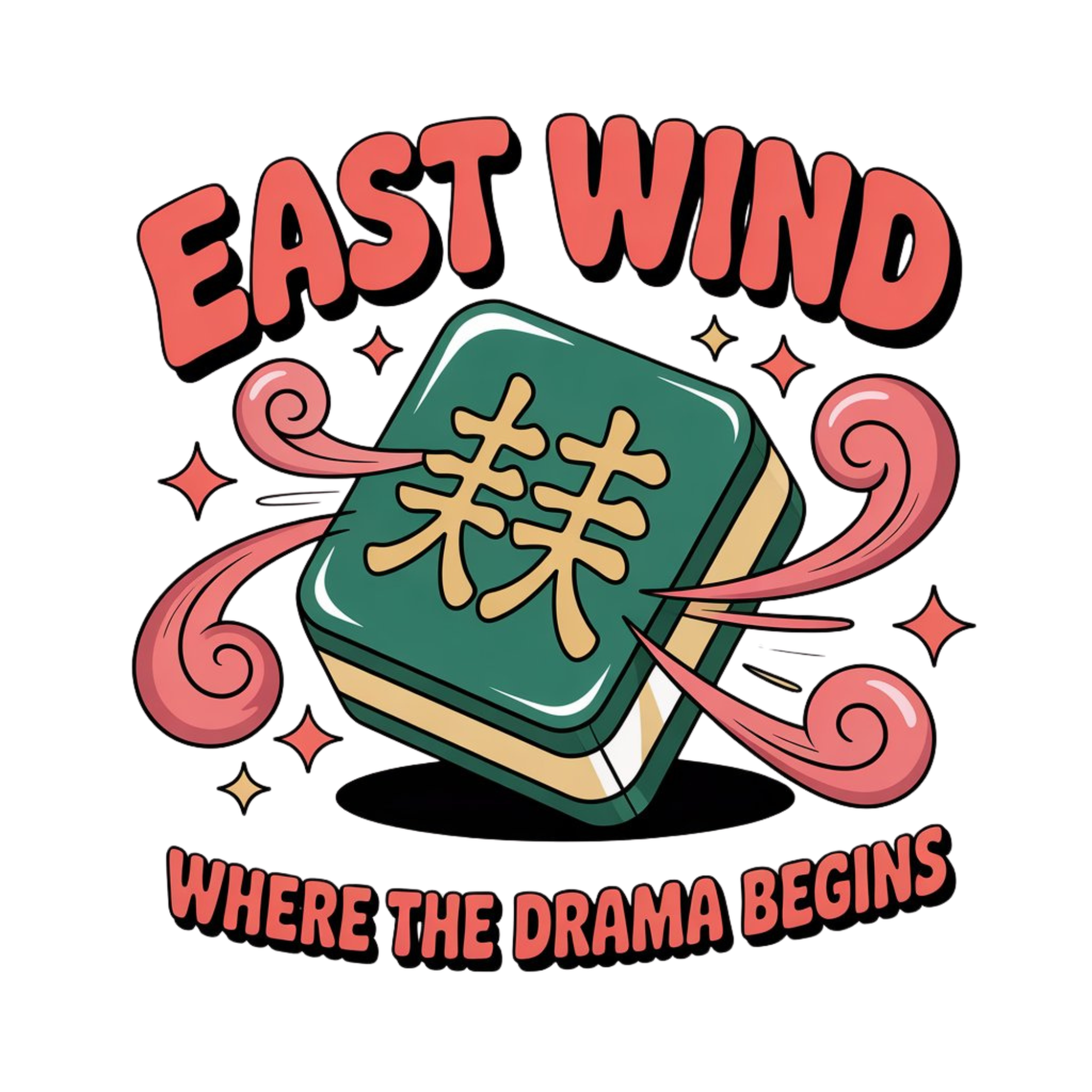 Cue the drama! This vibrant East Wind – Where the Drama Begins sticker captures the energy of every mahjong table with a playful twist. Featuring bold red text and a dynamic wind-blown tile illustration, this sticker is a must-have for the player who knows the East Wind always brings the heat.