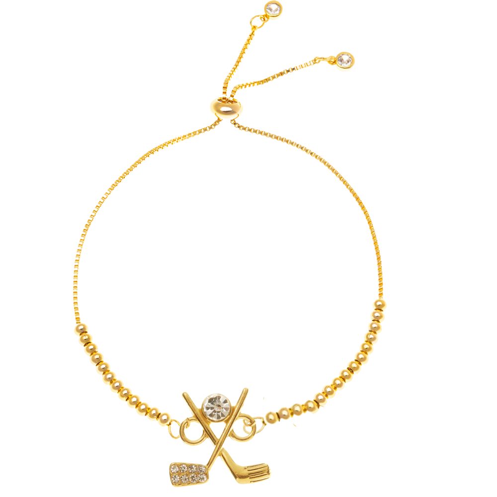 Elevate your style with our Tarnish Free Adjustable Golf Club Beaded Bracelet, designed for golf lovers who appreciate timeless elegance. Featuring a detailed gold-plated golf club charm and polished beaded accents, this bracelet offers a sophisticated, tarnish-resistant finish. The adjustable fit ensures comfort for all-day wear on and off the course.