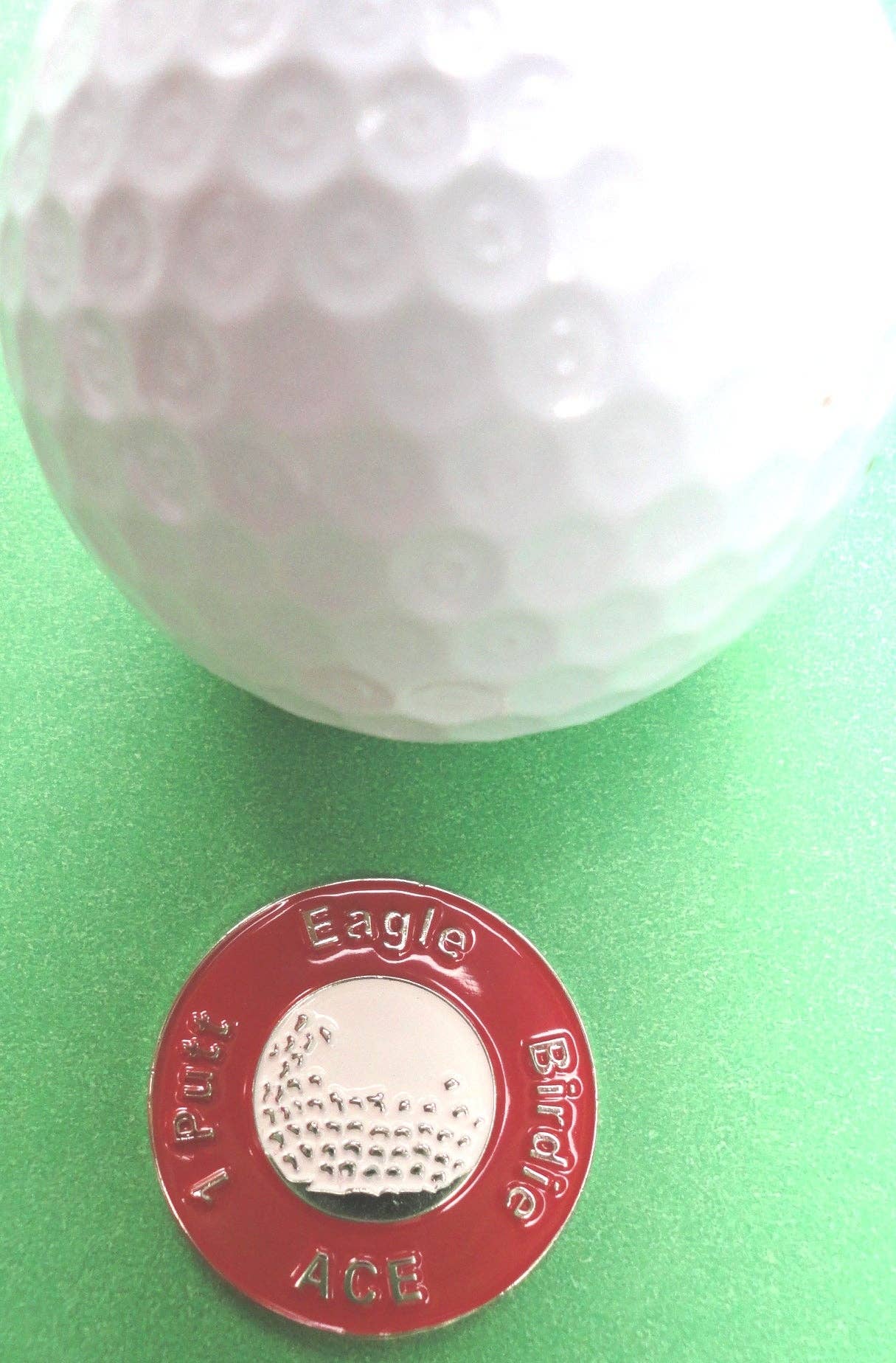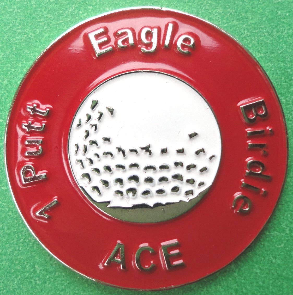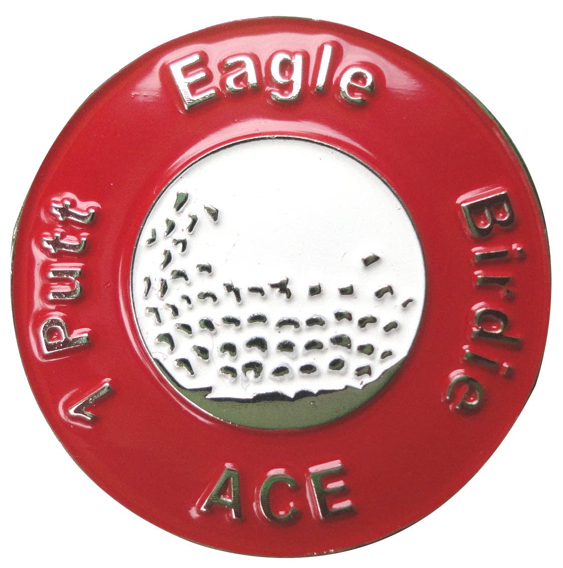 This high quality Great Expectations Red Ball Marker comes with exceptional detailing. Features raised chrome Eagle-Birdie-Ace-1 Putt lettering with Red background and a golf ball in the middle.