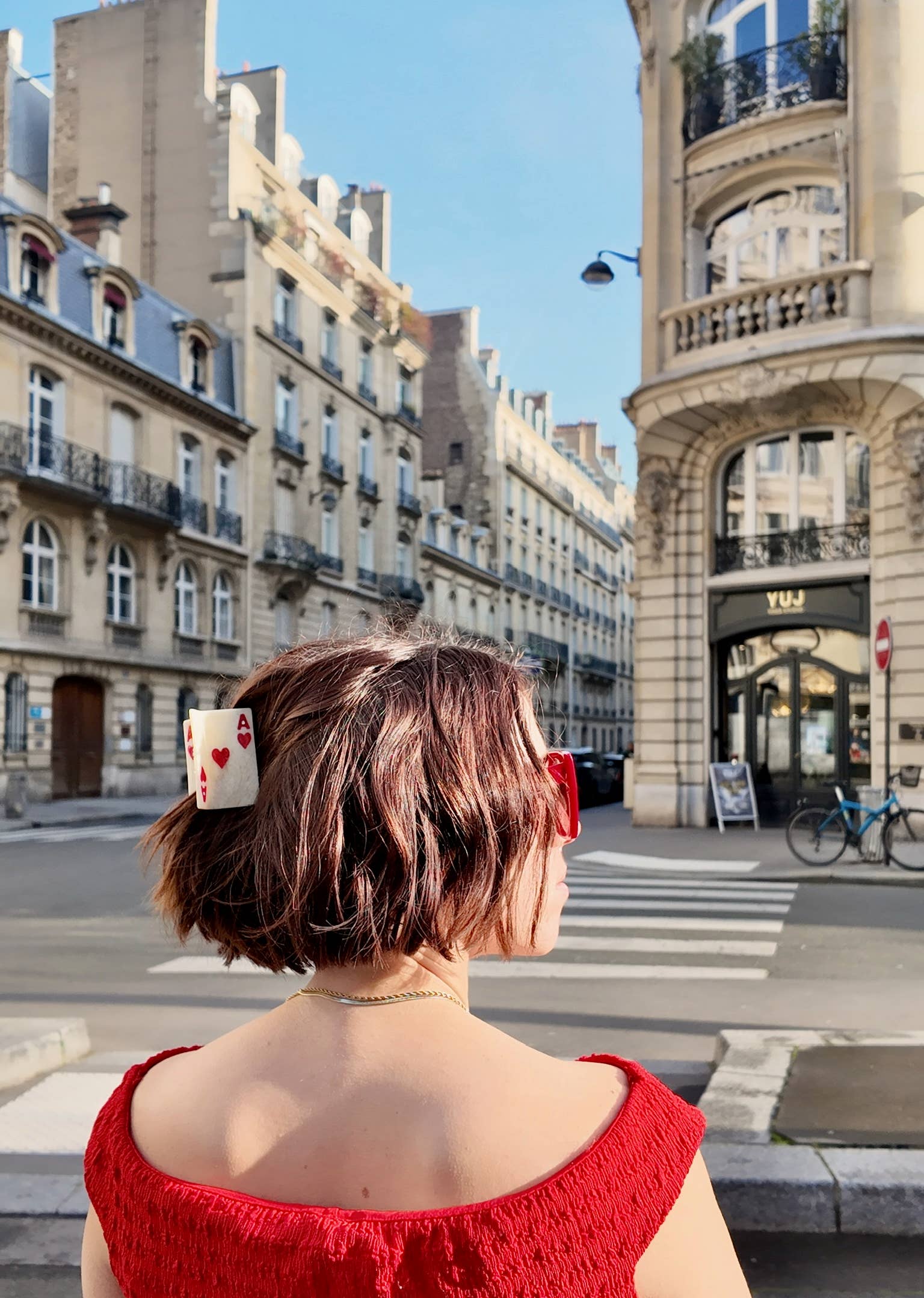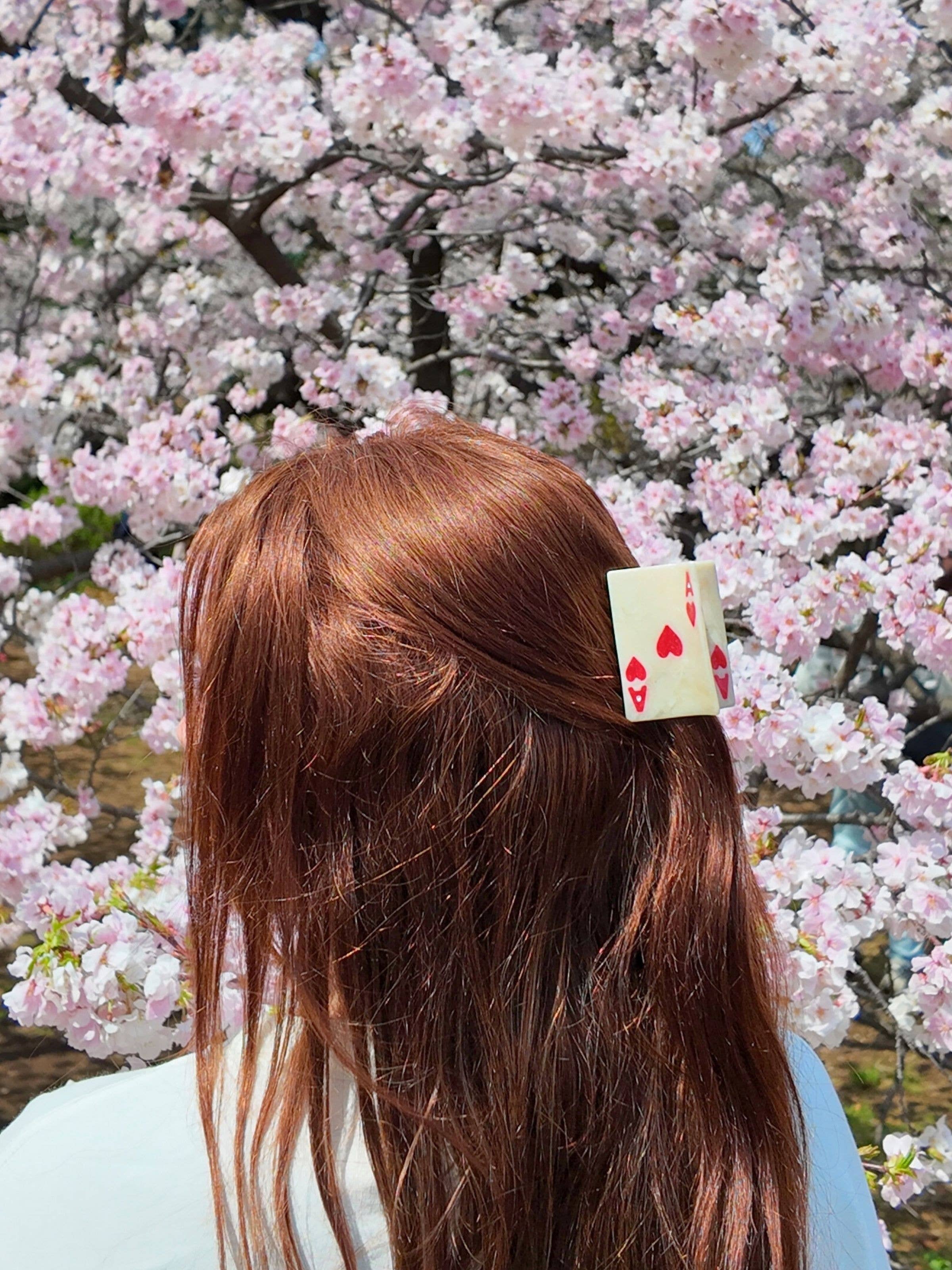 Romantic, playful, and designed to make a statement. The Mini Ace of Hearts Claw Clip is inspired by classic love stories, late-night card games, and those moments where a little drama feels just right.
