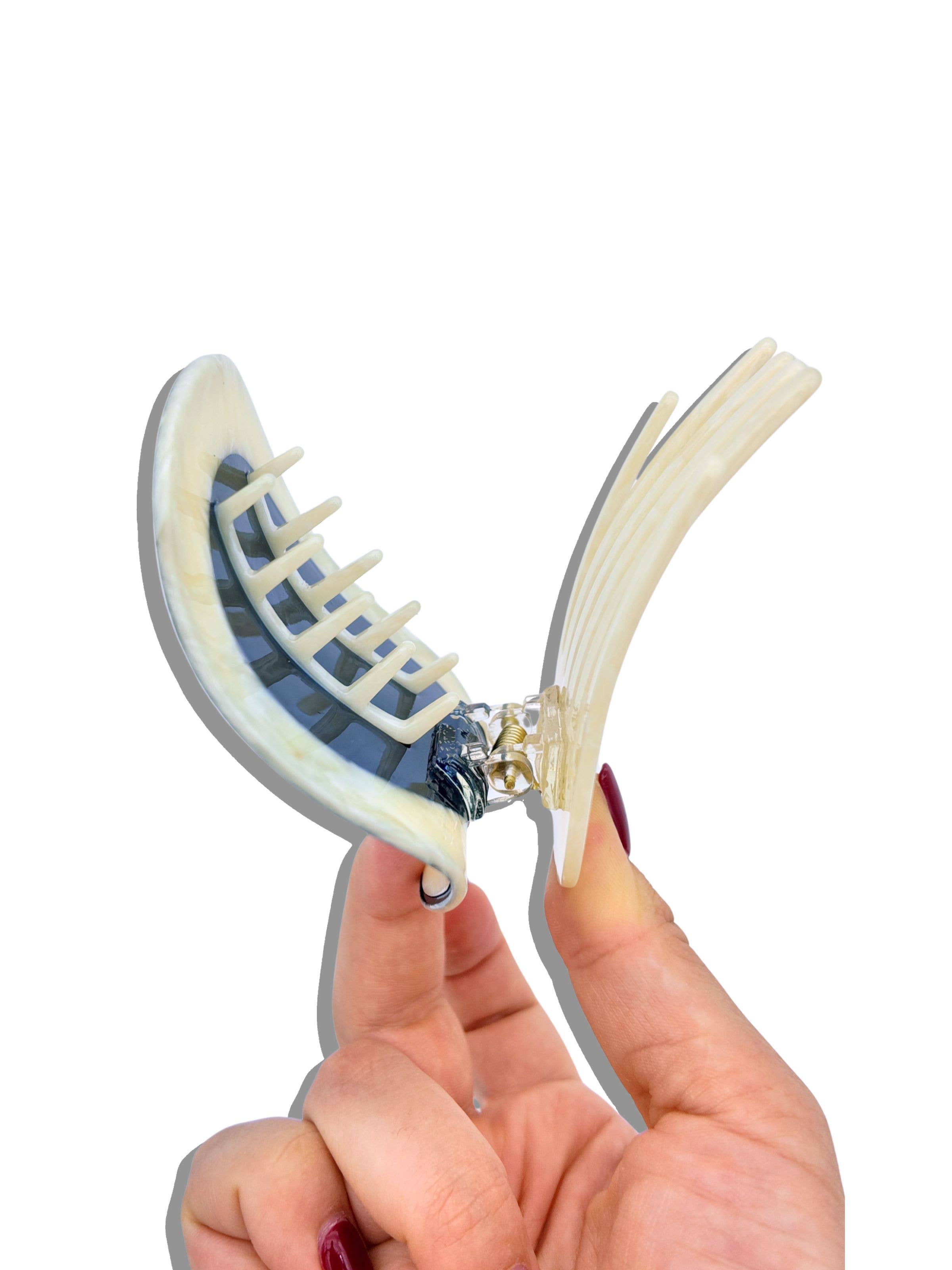 Crafted by our Solar Eclipse artists in small batches, this flat-style claw is designed for comfort—perfect for laying down, stretching out, or hitting your favorite pilates class after a jog. Made from biodegradable acetate and finished with a strong hinge for an all-day hold.