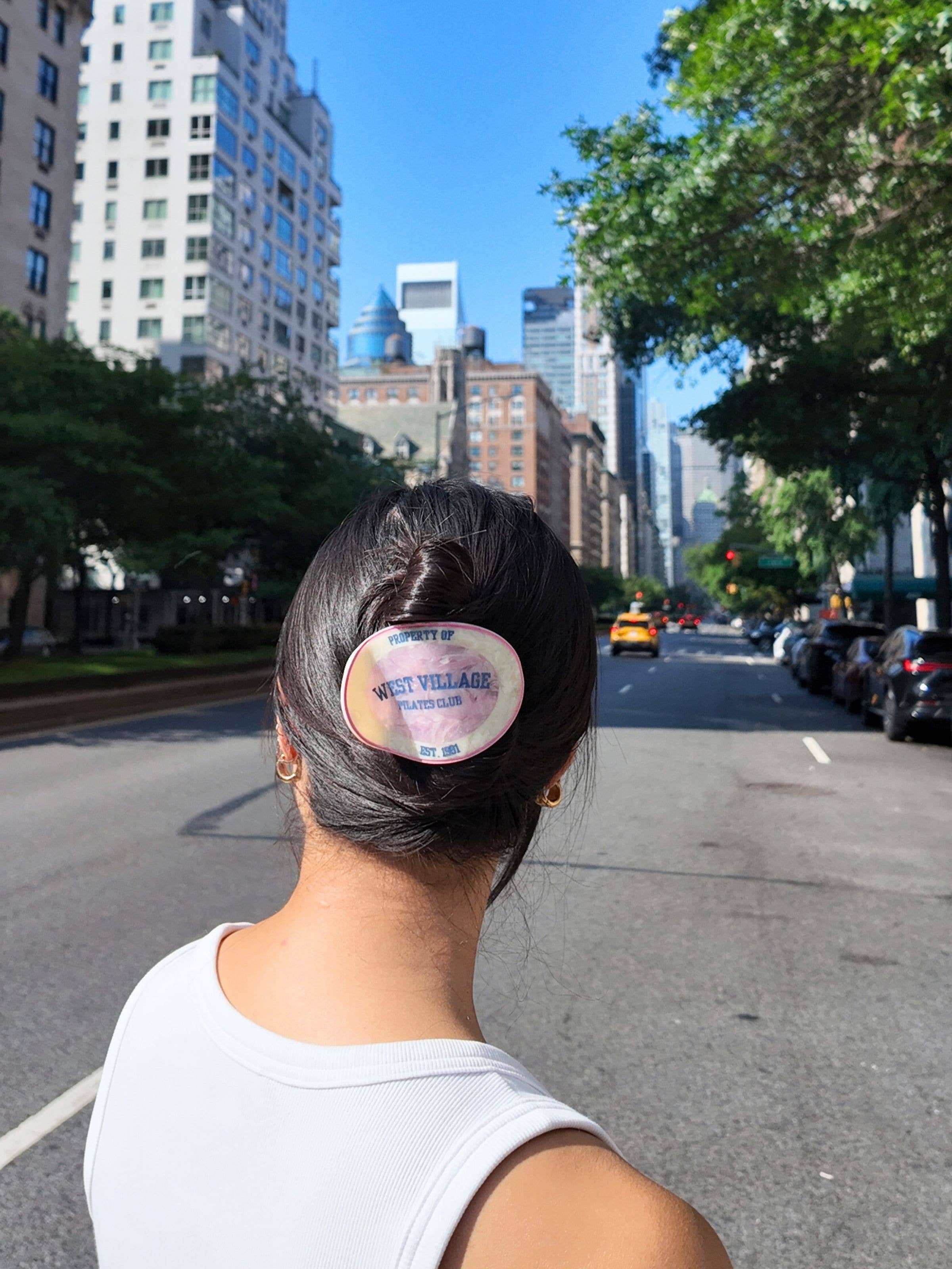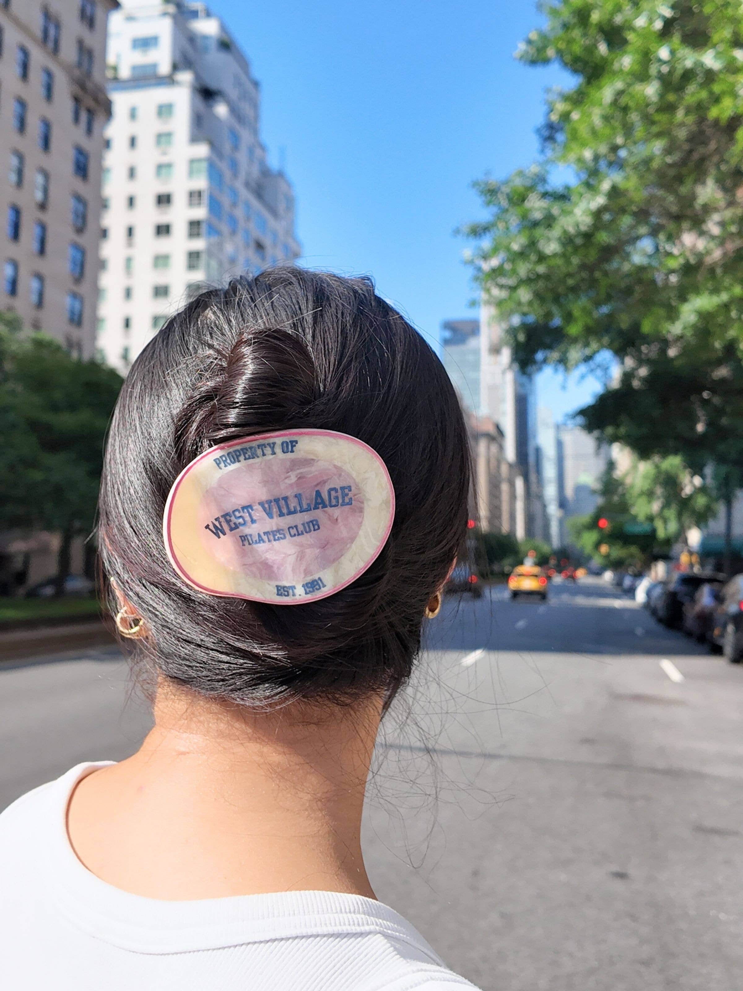 Inspired by reformer classes, green juice runs, and slow strolls down cobblestone streets, this hand-painted clip channels West Village ease with a sporty twist. It’s part accessory, part lifestyle statement—for that just-left-pilates look, whether you actually went or not.