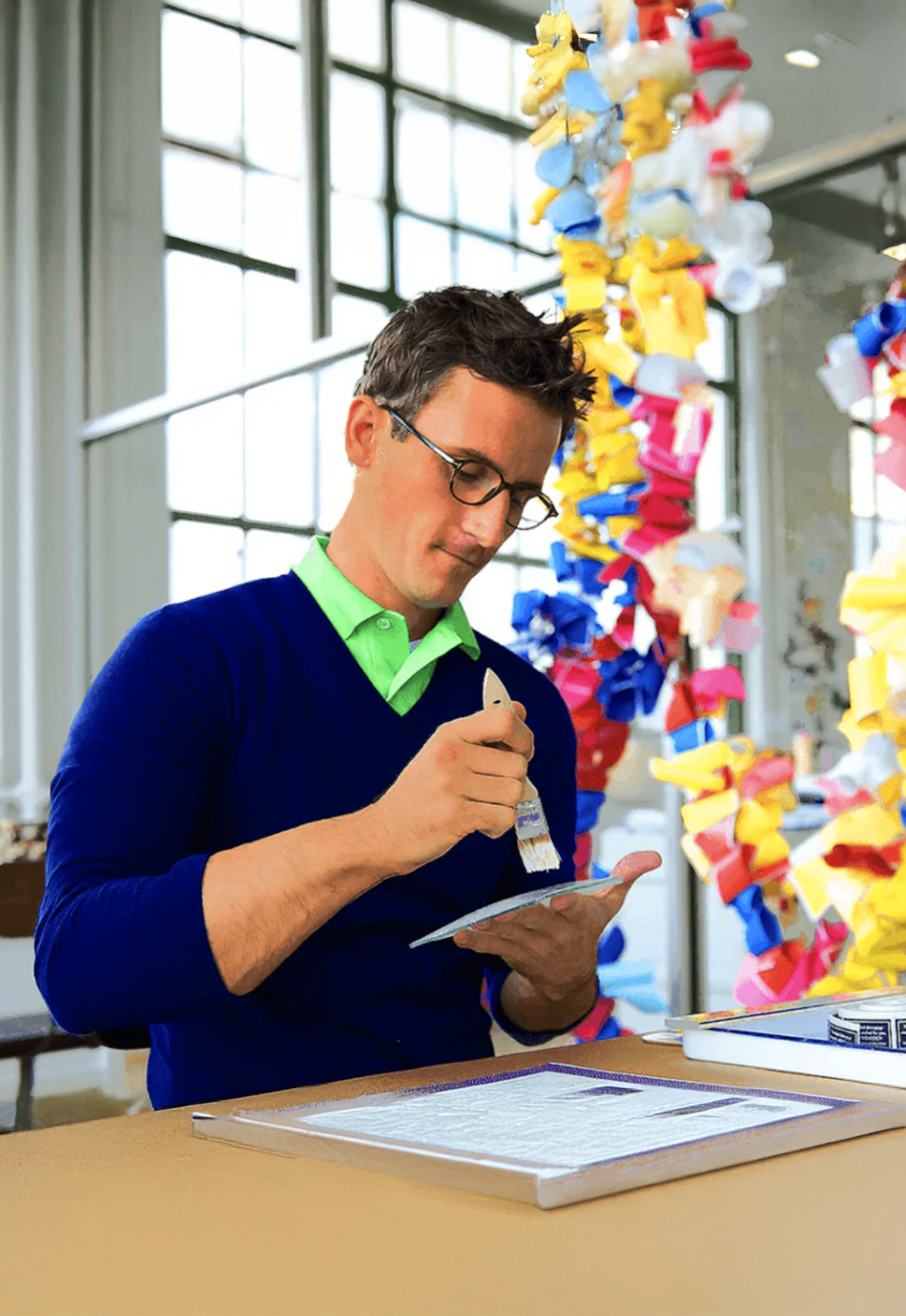 Not every trophy belongs on a shelf. Some deserve to be bent into glass, finished by hand, and signed by the artist himself. In our New York studio, Ben reimagines the centuries-old French tradition of decoupage with a wink of wit — here, a lineup of golf clubs rendered as art, turning sport into story.