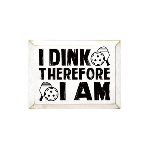 I Dink Therefore I Am (Pickleball) - Horizontal Wood signs are made from solid knotty pine, so please allow for slight imperfections - as wood is imperfect by its nature - but only adds to the character of the product. It is intended to have a rustic, old look and feel. Expect knots, variance in color, and natural cracks - as well as small edge “dents” or chips. Keywords: