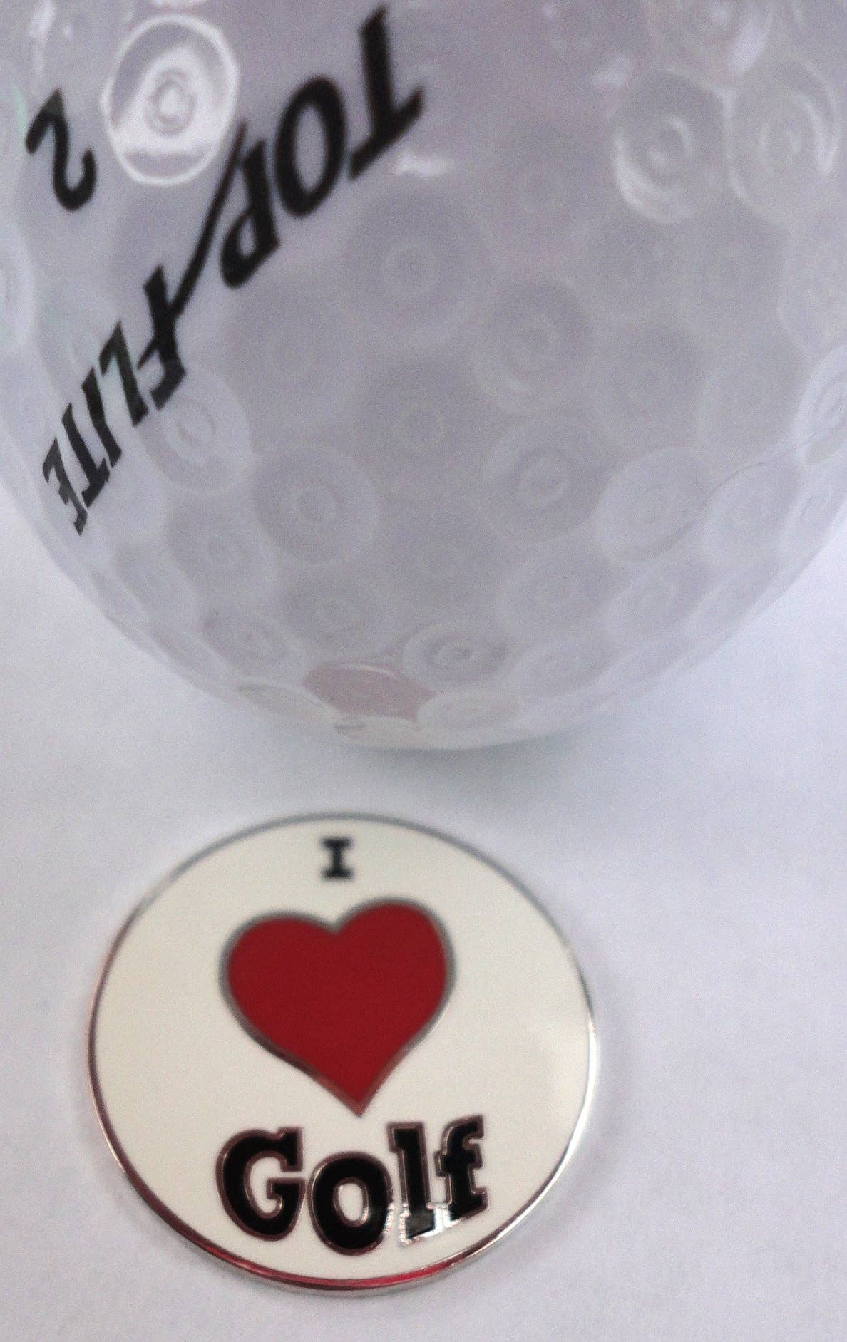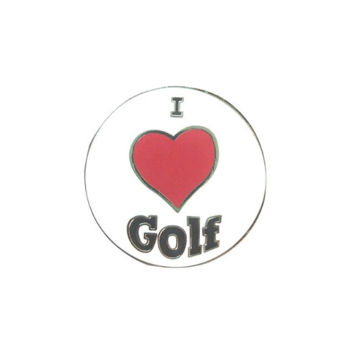This high quality I Love Golf Ball Marker comes with exceptional detailing including a red heart embedded in faux ceramic.