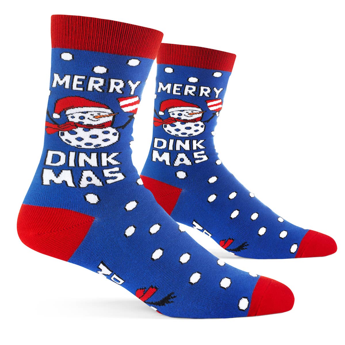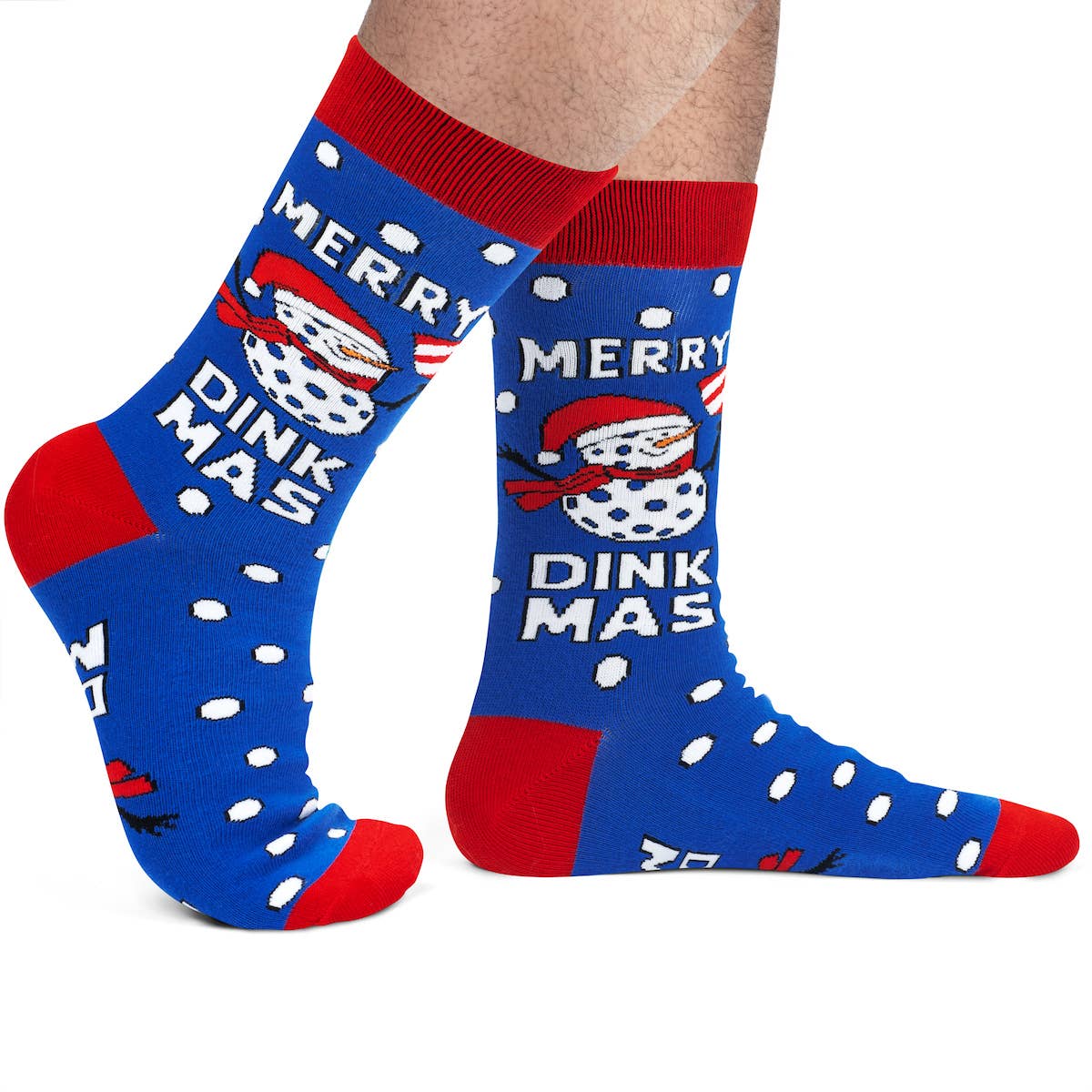 Get ready to serve up some holiday cheer with our "Merry Dinkmas" socks! These festive Christmas socks feature adorable snowmen getting in on the pickleball action, making them the perfect accessory for any pickleball enthusiast this holiday season. The playful design and cheerful message will bring a smile to your face and add a touch of whimsy to your outfit.