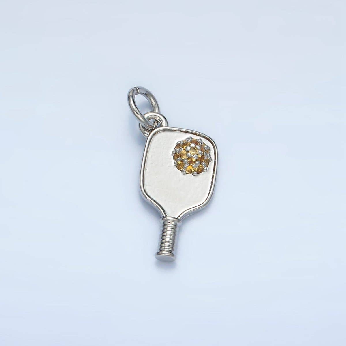 Minimalist Pickle Ball Charm in 24K Gold Filled Pendant Sports Paddle with CZ Ball  D-620