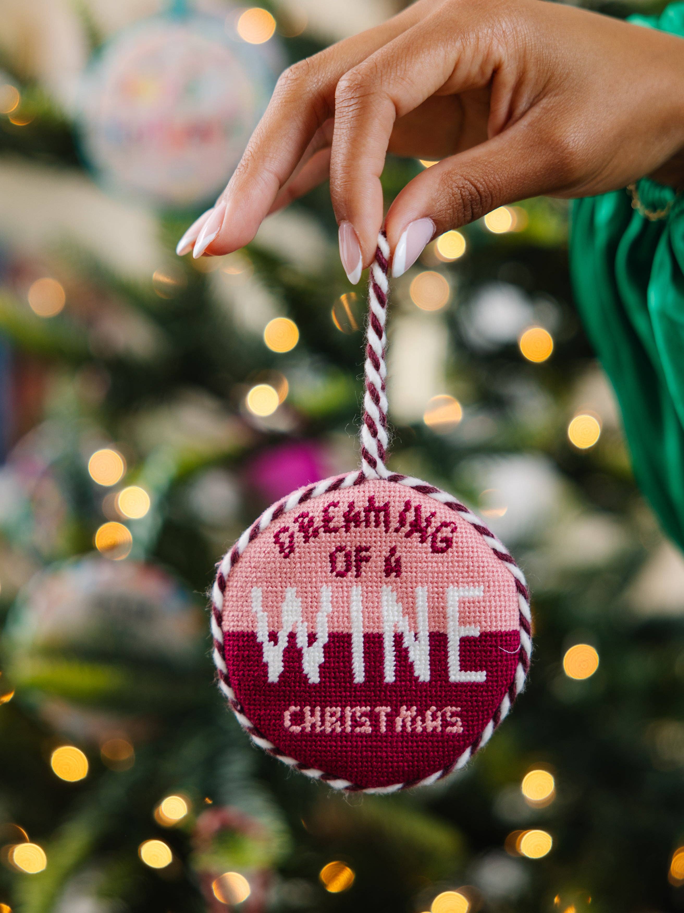 Let them know you're dreaming of a wine Christmas with this cheeky needlepoint ornament. Backed in luxe velvet, we've revived this Southern staple with sayings that are sure to get a smile. See the full collection here and you will be sure to find one that sparks joy on your tree. Take your holiday decor from trad to rad with Furbish's curated assortment of festive needlepoint pillows, ornaments, tree toppers, stockings, and tree skirts.
