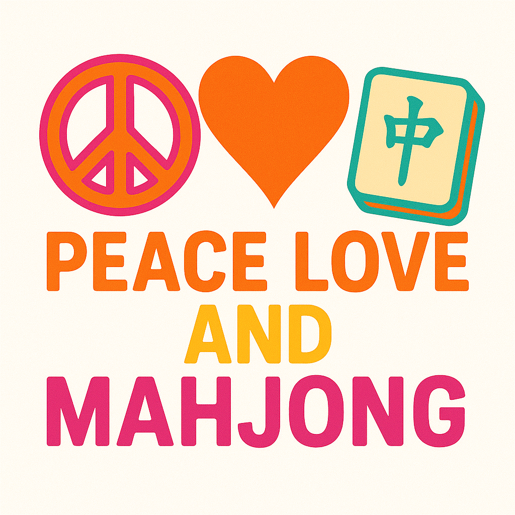 Celebrate your love for the game with this bold and playful Peace Love and Mahjong vinyl sticker. Featuring a retro color palette and iconic symbols—a peace sign, heart, and mahjong tile—this design is perfect for expressing your passion in style.