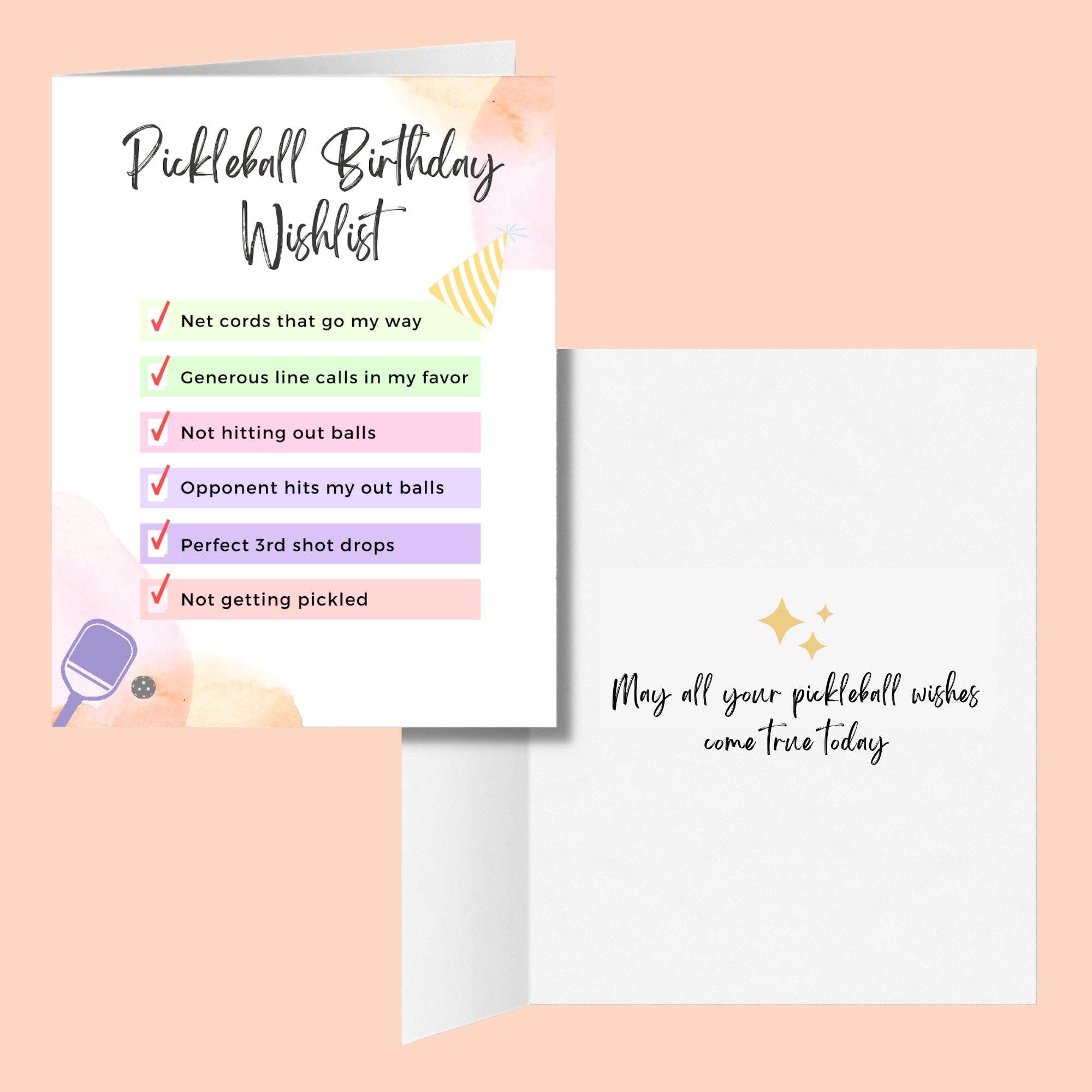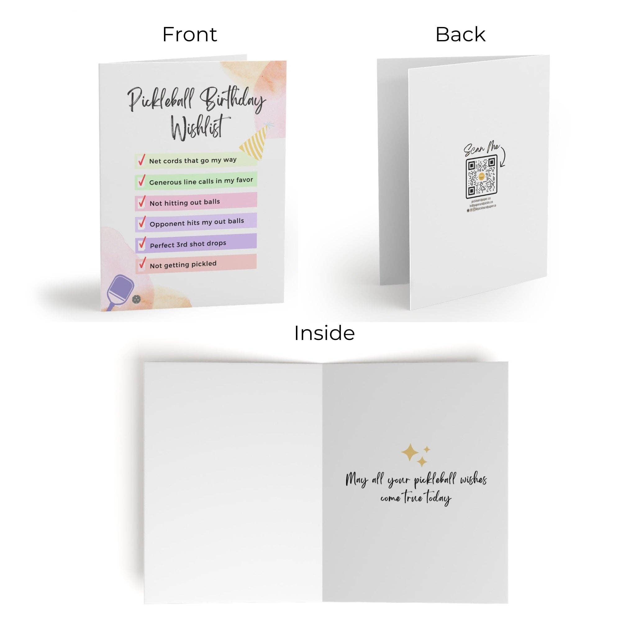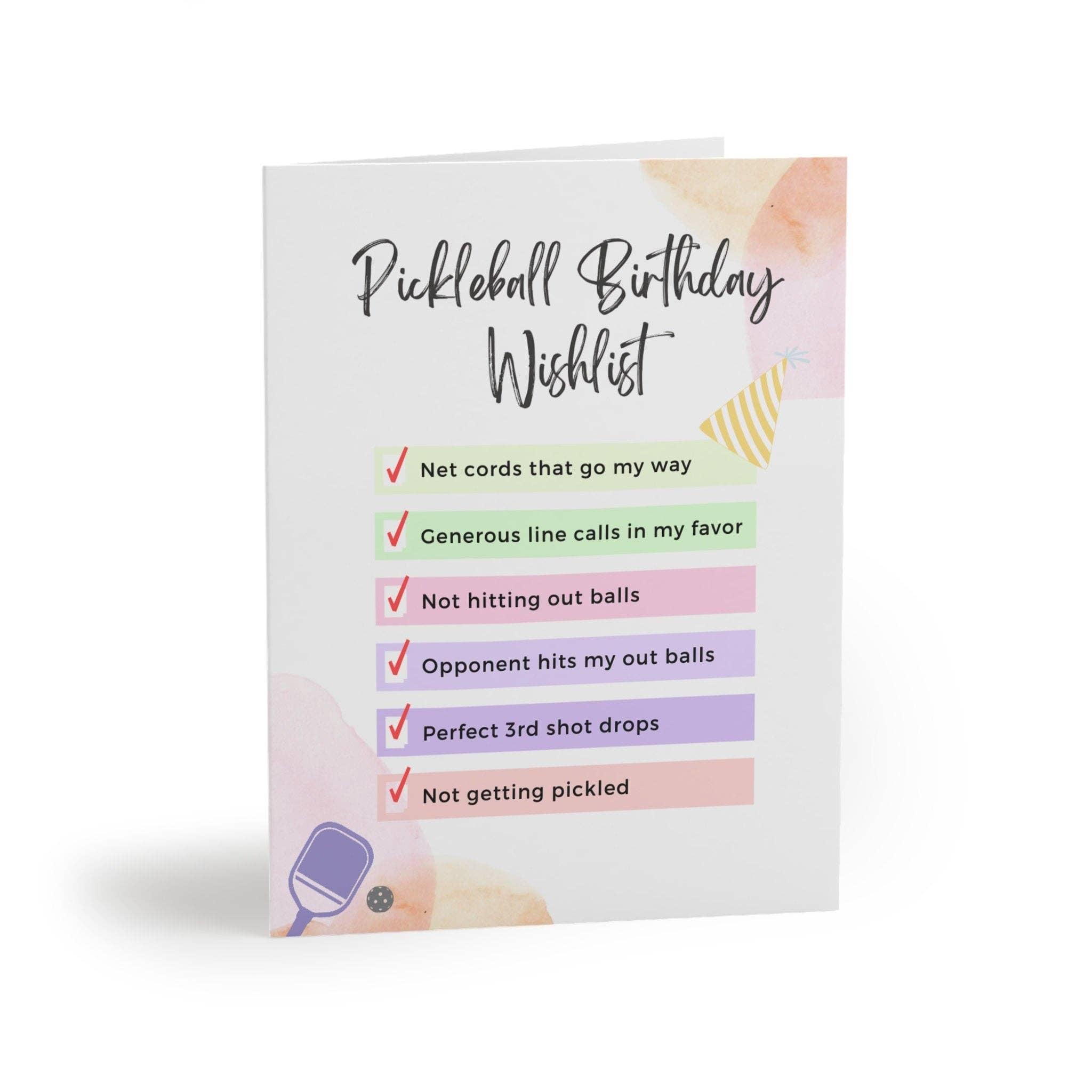Looking for the perfect pickleball birthday greeting card to gift to your favorite pickleballer? Look no further! This colorful, cute and modern, minimalist pickleball bday card was made for and by picklers who have a long list of pickleball wishes for their birthday. Get this unique pickle ball card for your pickleball partner's birthday that will make for a great and memorable gift.