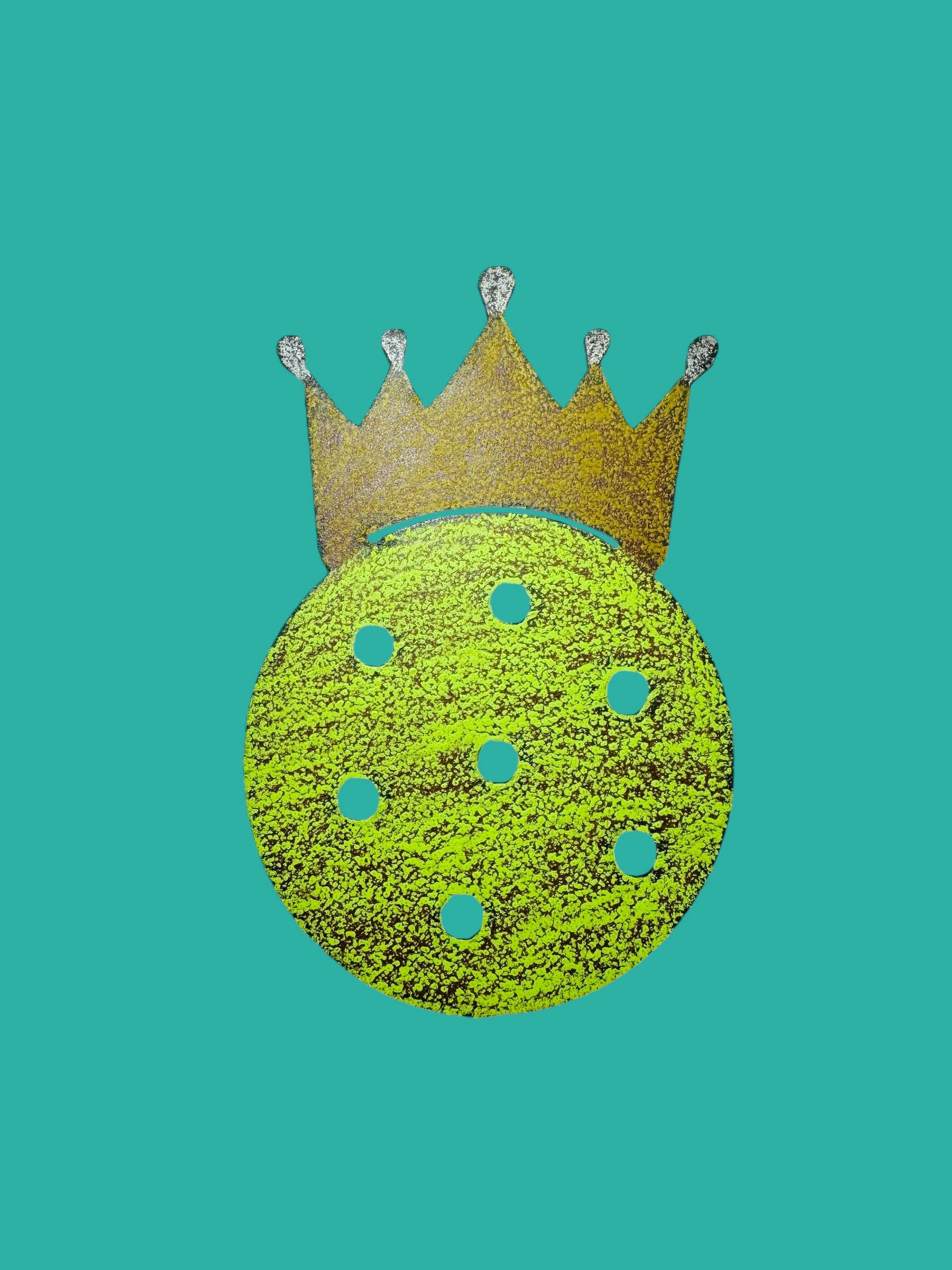 Recycled Metal Pickleball KING Large magnets painted in assorted colors. Made from 18-gauge steel, our sculptures are plasma-cut using a computer-controlled device before being polished, washed, and rusted by hand for a signature look. Handmade in Texas. We use very strong magnets and recycled metals. Small batch maker. Need a namedrop then let us know. These are really big. Tags: Pickleball, refrigerator magnet, eco conscious gifts, impulse buy, counter display, made in America, Whimsies