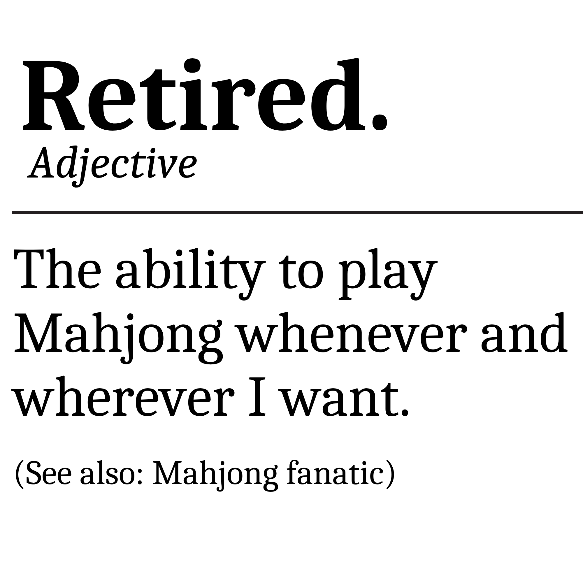 “Retired. Adjective – The ability to play Mahjong whenever and wherever I want. (See also: Mahjong fanatic).”