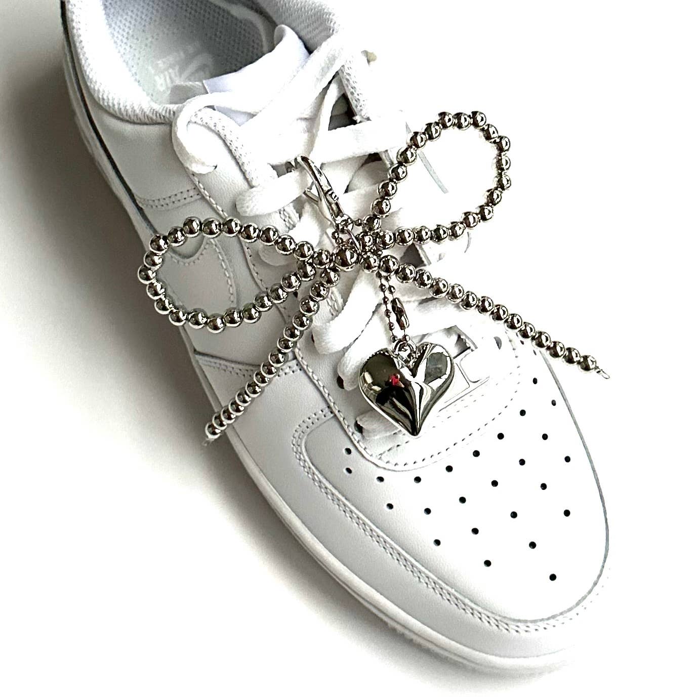 Transform your sneakers, boots, or lace-up heels into statement pieces with these stunning Pearl Bow Shoelace Charms! Featuring delicate silver ball chain bows and a graceful hanging silver charm, these accessories add a touch of class and sparkle to every step you take.