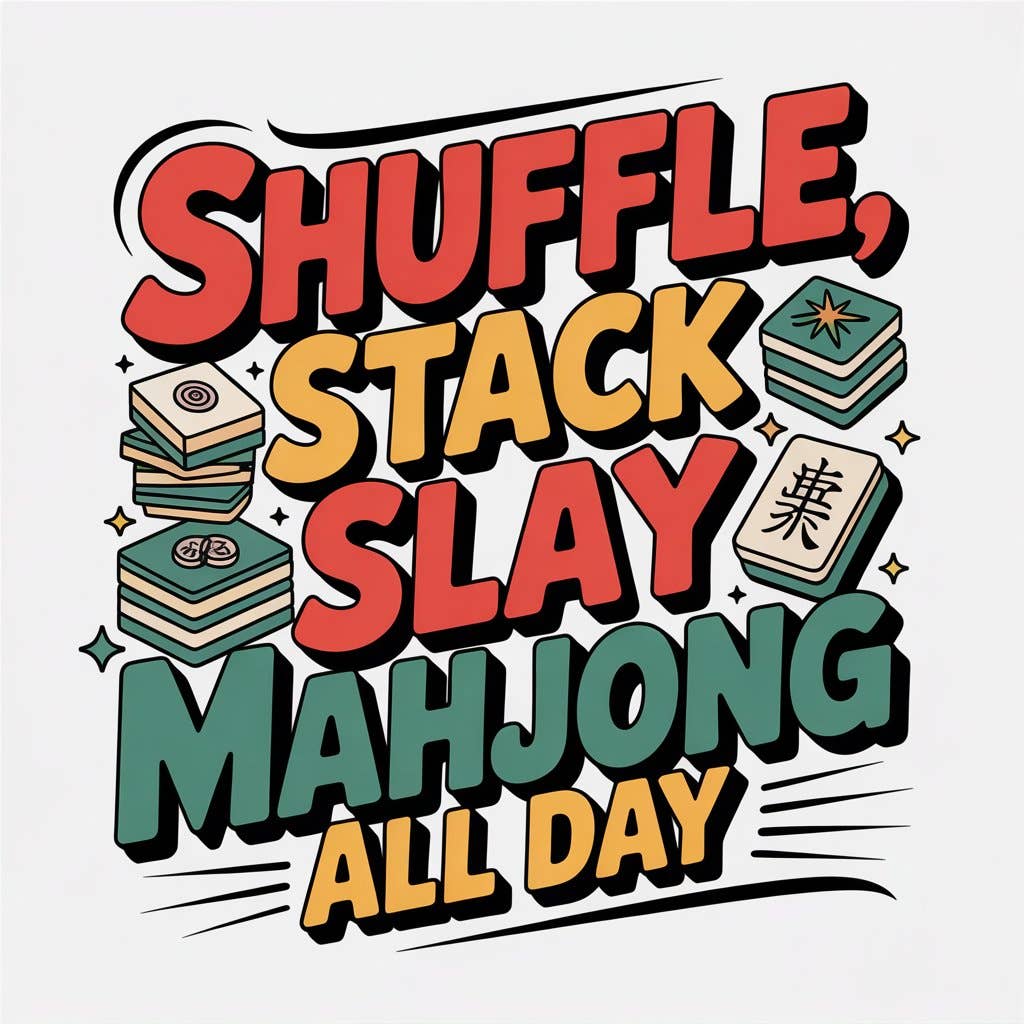 Bring the bold energy of game night to your favorite surfaces with this 3" square vinyl sticker featuring the phrase “Shuffle, Stack, Slay Mahjong All Day.” Bright pops of red, gold, and teal highlight stacks of illustrated tiles and playful typography that speaks straight to the heart of every mahjong player. Perfect for your tile case, water bottle, laptop, or wherever you like to show off your love for the game. This sticker is a fun gift for any mahjong friend or tournament partner who plays to win—and look good doing it.