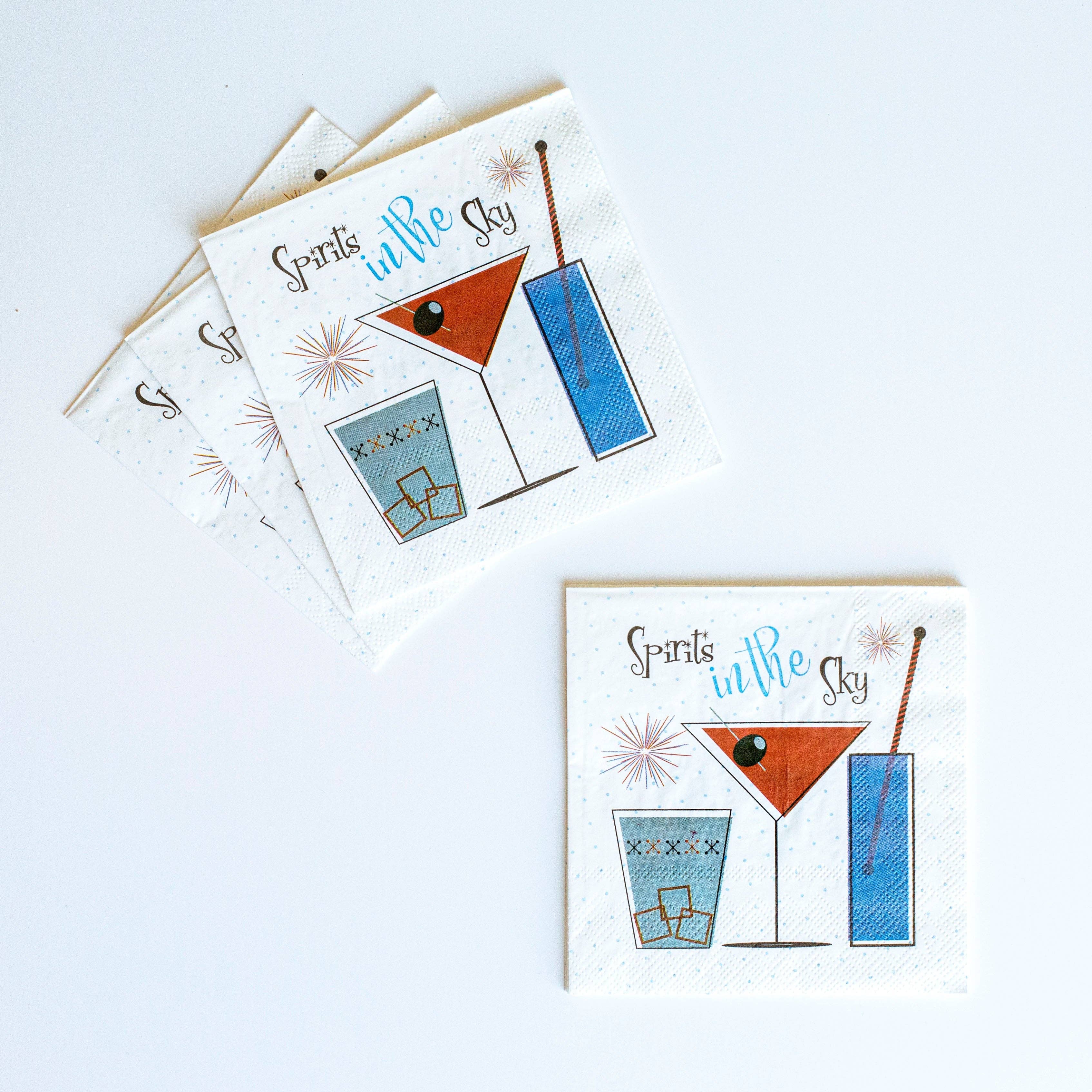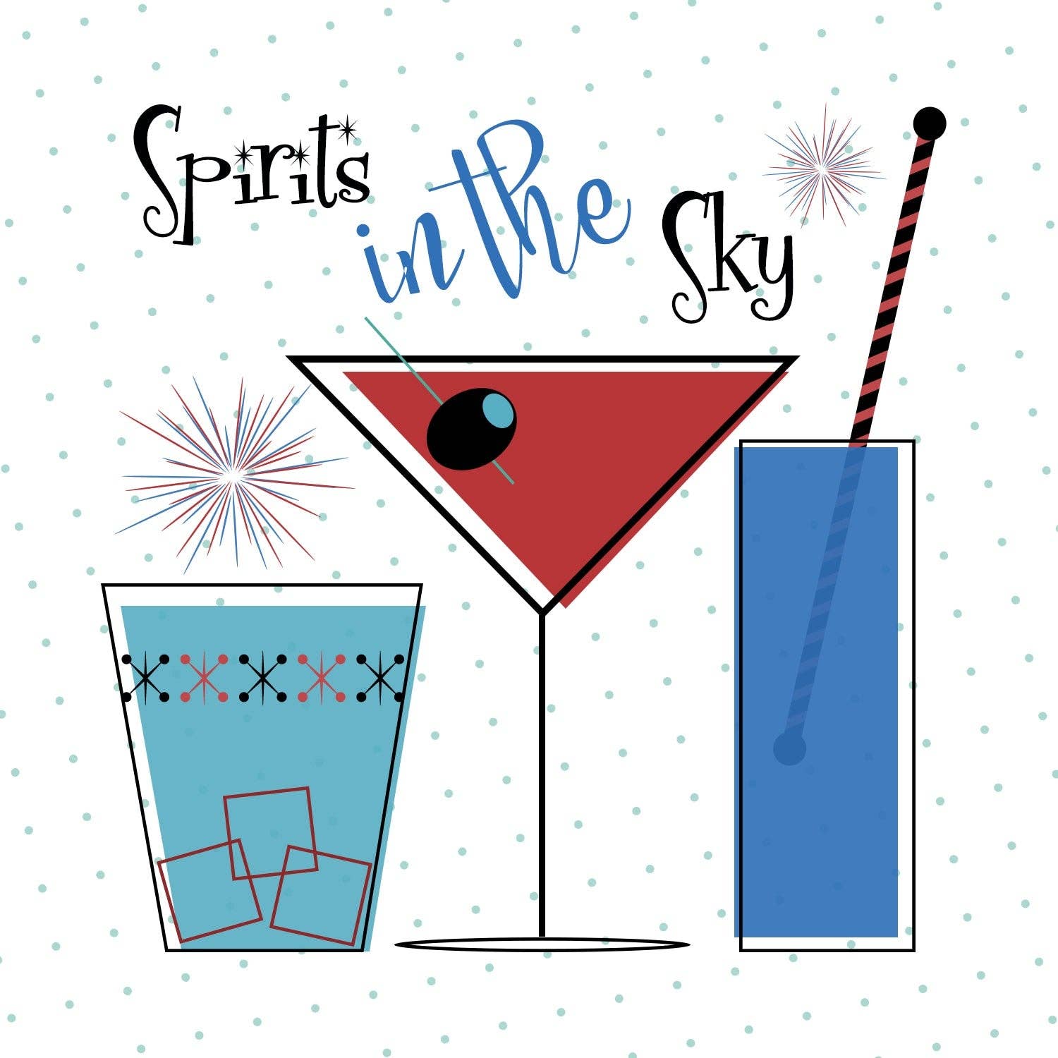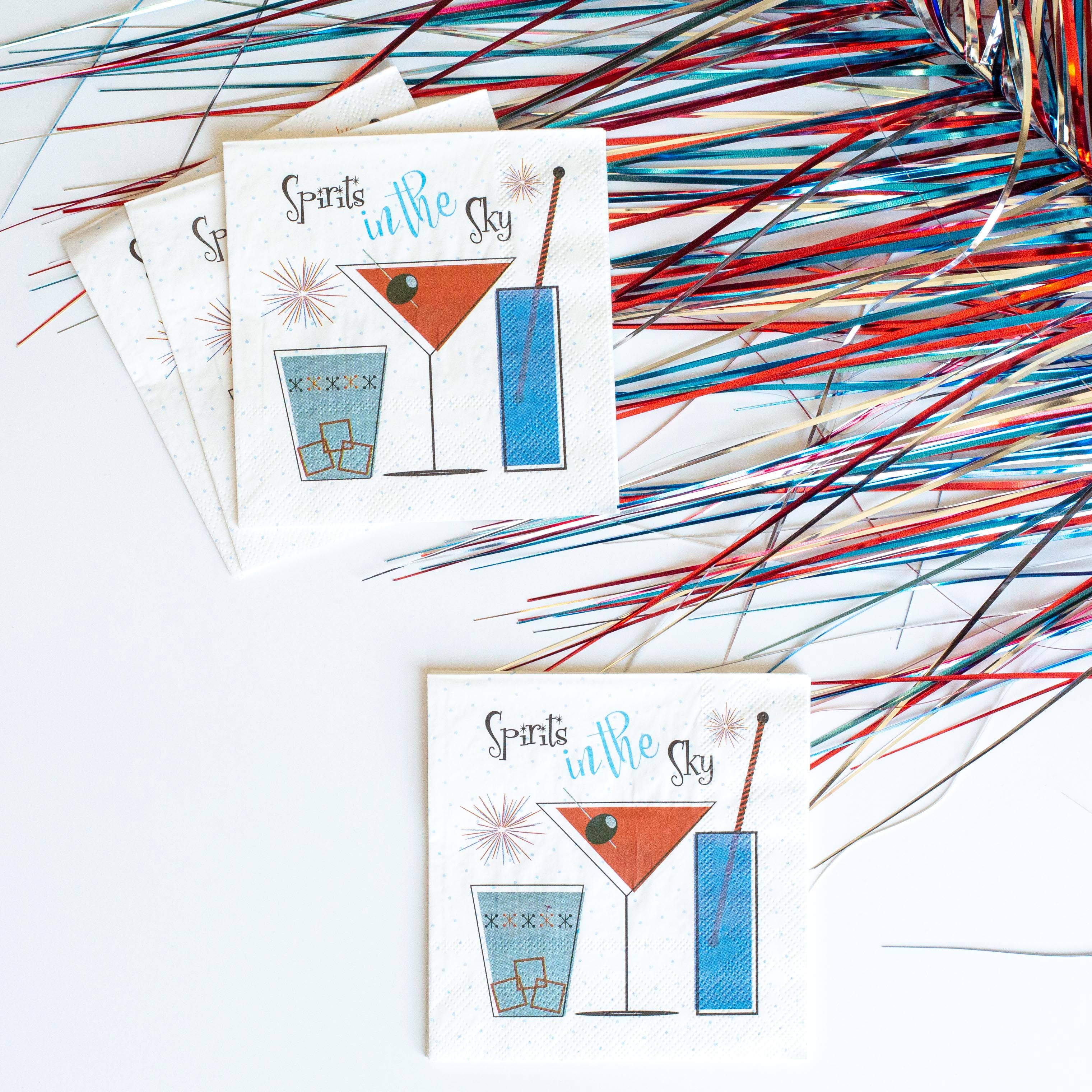 Swig and celebrate in style with our "Spirits in the Sky" Cocktail Beverage Napkins! These super cool, mid-century modern napkins feature a vintage cocktail image, festive red, white and blue colors, and standout pun "Spirits in the Sky" text! Cocktail time just got a whole lot brighter. 🔆