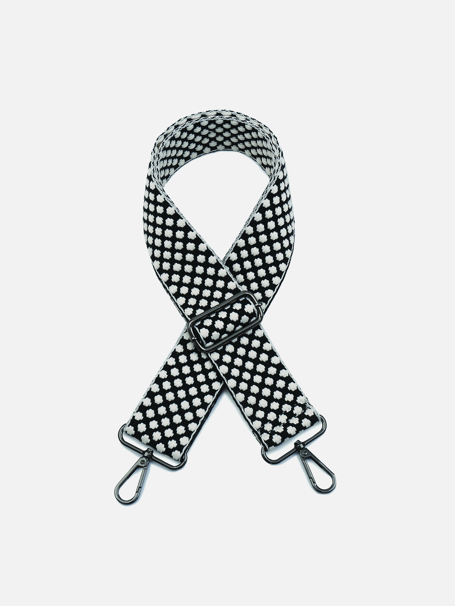 Dotted Guitar Strap -Type: Adjustable Handbag Strap -Material: Not specified -Hardware: Gold/Silver-tone -Clasps: Metal Clasps -Adjustability: Adjustable -Dimensions: Strap is approximately 29" - 51" *SALE* on selected colors only Add a touch of elegance to your handbag with the STPDOT Dotted Guitar Strap. Featuring a stylish dotted design and available with either gold or silver-tone hardware, this adjustable strap offers both style and functionality. With metal clasps at both ends and an adjustable length ranging from approximately 29" to 51", it provides versatility and convenience for your carrying needs.