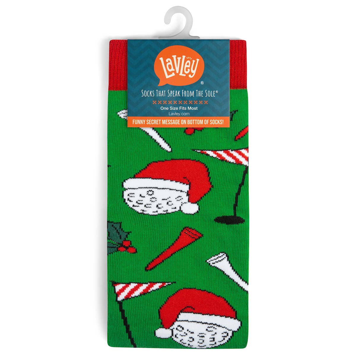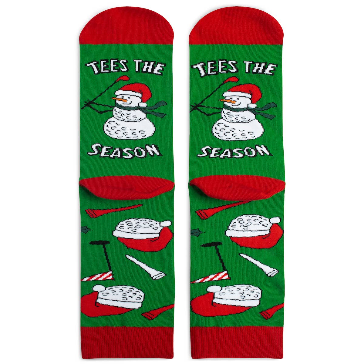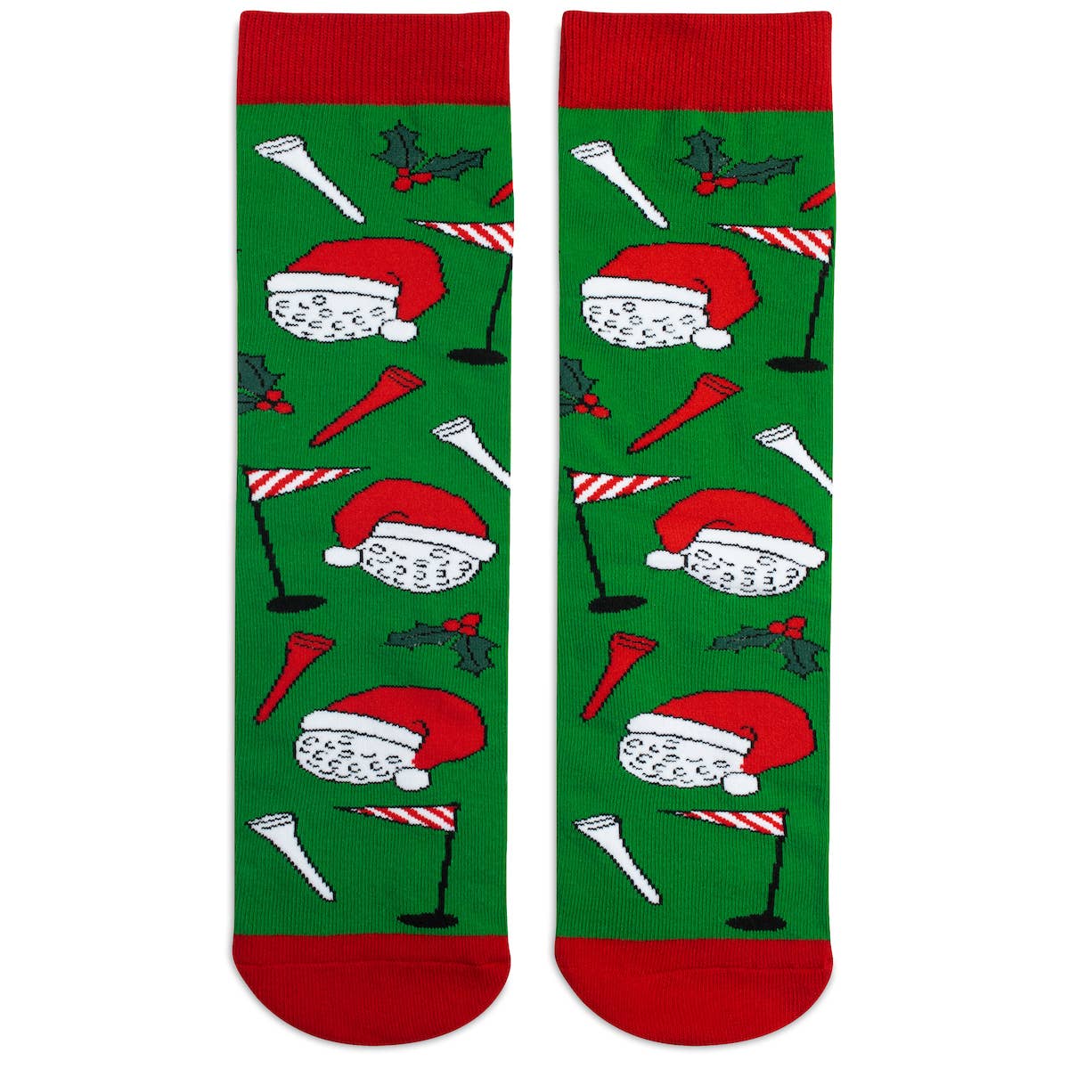 Tee up the fun this holiday season with these whimsical golf socks that are sure to brighten the spirits of any golf lover! Featuring a festive design of golf tees and golf balls adorned with holiday decorations, these fun Christmas socks are the perfect way to show off your passion for golf during the most merry time of the year. The clever message at the bottom adds an element of humor that is bound to spread holiday cheer!